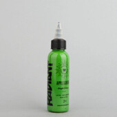 Краска для татуировок «Apple Green» от Radiant Colors – это очень насыщенный светло-зеленый оттенок, как цвет зеленых яблок или кузнечиков, которые прячутся в зеленой летней траве. Достаточно живой оттенок, который отличается невероятно чистым цветом.